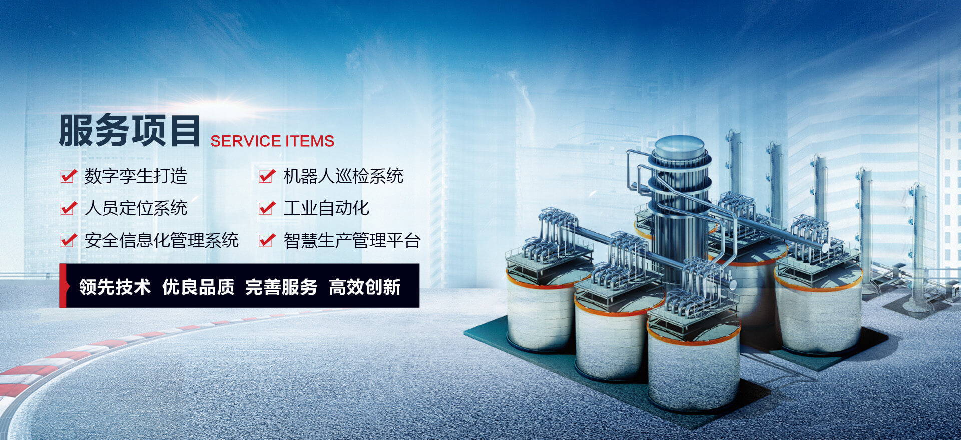 我們秉承“科學創新、合作共贏,為客戶提供滿意的系統產品服務”之理念,充分發揮創新優勢、專業優勢、服務優勢,更好地為用戶提供高效的服務。公司為多家大型企業提供了工業自動化、安全管理信息化平臺、智慧生產管理平臺、數字孿生打造和機器人巡檢系統等業務,廣泛應用于化工園區、石化煉廠、碼頭罐區、化工生產、固態倉儲、鋼鐵治金、電力電廠等領域,助力用戶實現智能化改造、數字化轉型和碳中和的目標。